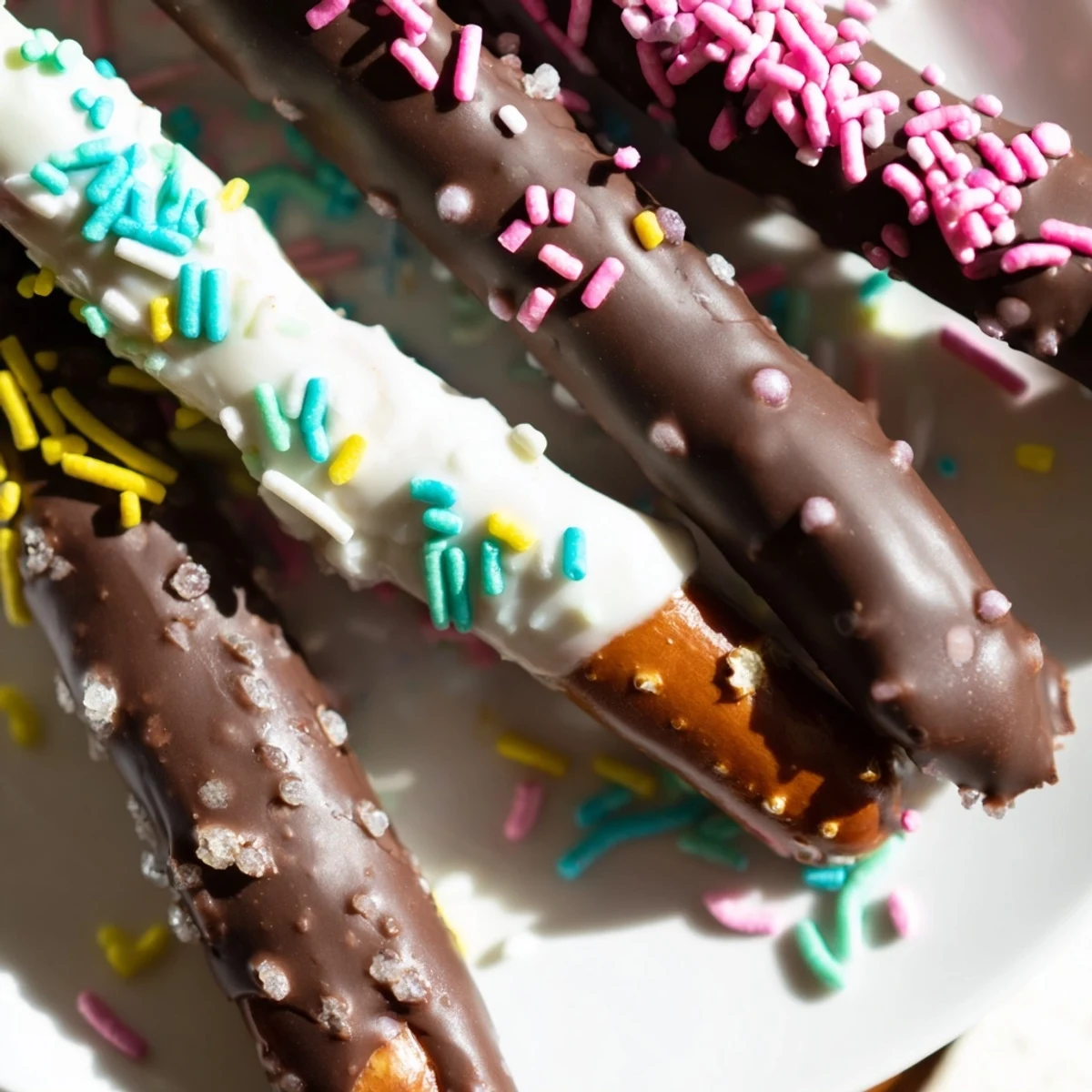 Apply sprinkles immediately after dipping while the chocolate is still wet and glossy. Work quickly over a bowl to catch excess sprinkles for reuse. Gently press decorations into the chocolate for better adhesion.