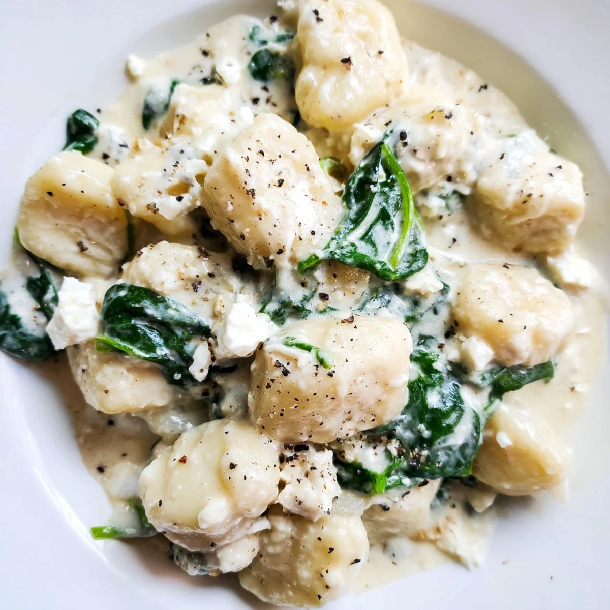 This comforting dish features soft potato gnocchi swimming in a velvety cream sauce, balanced by fresh wilted spinach and tangy crumbled feta. The combination creates a perfect harmony of textures and flavors—creamy, salty, and subtly earthy. Ready in just 25 minutes, it makes an ideal weeknight meal that feels indulgent yet comes together with minimal effort.