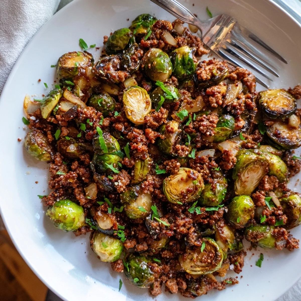 The smell of caramelized Brussels sprouts hitting a hot skillet still reminds me of my sister's tiny Brooklyn apartment, where we'd crowd around the stove on Tuesday nights, wine in hand, taking turns stirring. She swore the secret was letting the sprouts get almost too brown before adding anything else. Now this ground beef and Brussels sprouts skillet has become my go-to when I want something that feels like a hug but takes barely any effort.