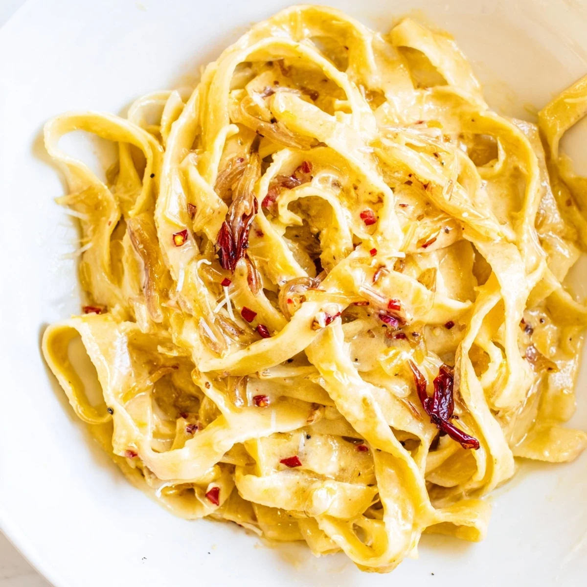 Indulge in a rich and comforting pasta dish that perfectly balances sweet and spicy flavors. Golden caramelized onions are slowly cooked to develop deep sweetness, then tossed with al dente fettuccine in a creamy sauce infused with garlic, red chili, and honey. This Italian-American creation comes together in under an hour, offering restaurant-quality results in your home kitchen.