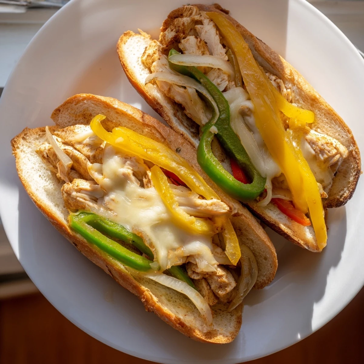 Savory chicken breast strips are seasoned with garlic and paprika, then cooked until lightly browned. Sweet yellow onions and colorful bell peppers are sautéed until softened and caramelized. The mixture is piled into butter-toasted hoagie rolls and topped with provolone cheese that melts into golden, bubbly perfection. These hearty sandwiches deliver 38 grams of protein per serving and come together in just 40 minutes for a satisfying meal any night of the week.